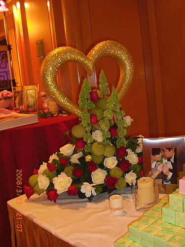 到了喜來登,「劃」好位子,帶著我選的香檳杯(祝你雙雙對對好幸福),